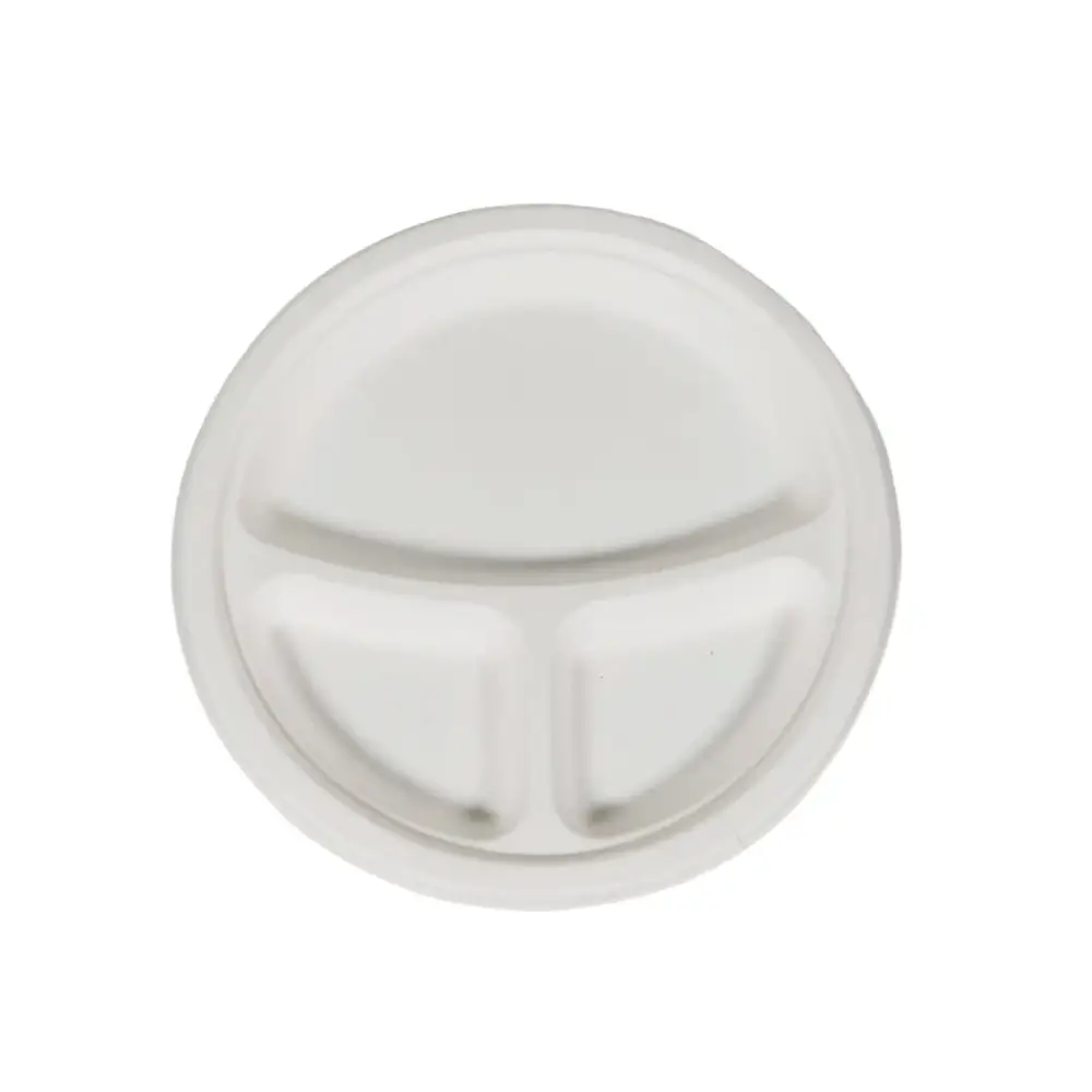 9″ Round Bagasse Lunch Plates – Three Comp – 20 Pack