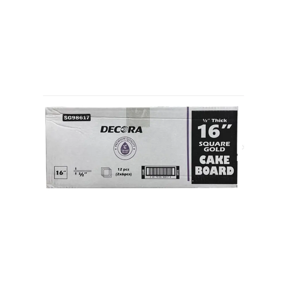 Decora 16″ x 16′ x 1/2″ Cake Board Square Gold (Thick)