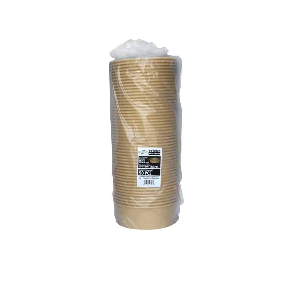 PE Lined Paper Round Container – Kraft, 1300ml, Case